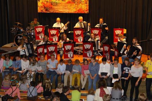Die erste gemeinsame Herbstfeier von HSG und Albverein stand unter dem Motto „Es war einmal“. In der voll besetzten Gemeindehalle begrüßten die Kinder – und Jugendgruppen, begleitet von den FunTasten der HSG, mit einem gemeinsam vorgetragenen Lied.