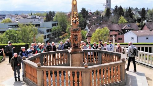 Die Kurzwanderer blieben dann im Stadt-Cafe Trölsch zu einer gemütlichen Kaffeerunde. Später brachte sie der Bus zur Gaststätte. Der andere Teil der Gruppe hatte aber noch eine Wanderung zum Engelbergturm vor sich. Über den Weg der Erinnerungen ging es zur KZ-Gedenkstätte alter Autobahntunnel. Nach einer kurzen Rast machten wir uns auf den Weg zum Engelbergturm. Einige hatten noch die Ausdauer die 123 Stufen zu bewältigen und wurden über den tollen Ausblick rund um den Engelberg belohnt. Der gemeinsame Abschluss in der Gaststätte am Engelbergturm rundete die Busausfahrt für diesen Nachmittag ab. Diesmal waren von der BFL 4 Wanderfreunde dabei. Die Wanderführer Gerhard Schlagbauer-Lux und Klaus Merkle bedanken sich für die rege Teilnahme.
