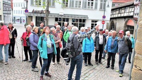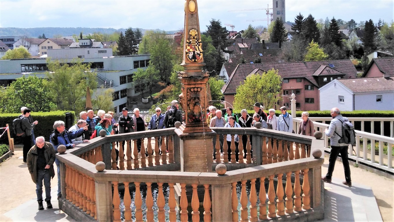 Erst im Jahre 1980 wurde der Pomeranzengarten nach den Originalplänen von Heinrich Schickhardt durch das Land Baden-Württemberg wiederhergestellt. Der fürstliche Lustgarten samt Pomeranzenhaus und Brunnenkasten wurde seinerzeit auf Wunsch der Herzoginwitwe Sibylla angelegt und war ihr irdisches Paradies von Duft-, Gewürz- und Heilpflanzen. Die Wappen von Sachsen-Anhalt und Württemberg erinnern an die Herzogin Sibylla. Weiter ging es am Schloss vorbei in die Altstadt. Die Innenstadt von Leonberg ist ein imposanter Anblick, besonders für Liebhaber alter Fachwerkhäuser. Dichter Friedrich Hölderlin, Astronom Johannes Keppler, Philosoph Friedrich Wilhelm Joseph Schelling und viele weitere Persönlichkeiten verbrachten einige Zeit in der Stadt.
