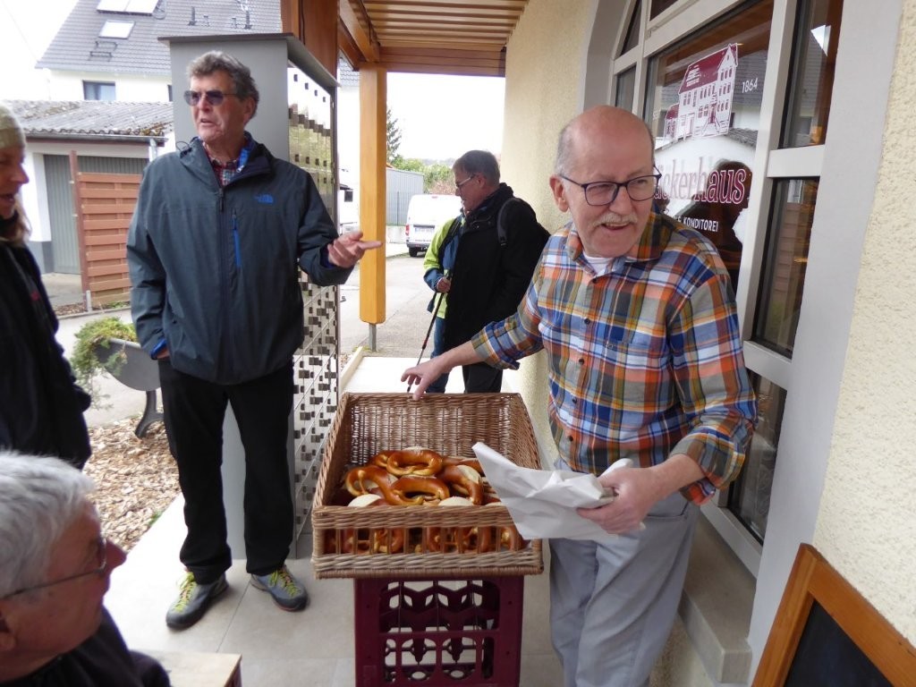 So ging es gleich weiter, in Roßwälden erwartete der Bäckermeister der Traditionsbäckerei Rau unsere Wandergruppe mit handgefertigten ofenfrischen Brezeln.